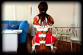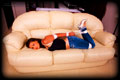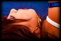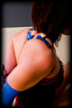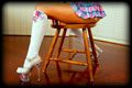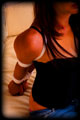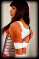 I had completed and new very tightly sized White Armbinder. It was the usual length but this thing was VERY narrow. It could even be impossibly narrow. I knew who to call to give it a try, thin petite and flexible Samantha. I laced it on only to find that with her elbows touching it wasn't fully laced shut yet. So I just kept pulling the laces anyway. Somehow it completely closed, and her arms were bound into super tight "Y" position. Once bound I decided to play a new game - just how long could I keep her in the Armbinder for..... |