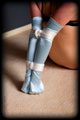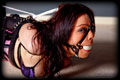 How about a nice stringent position involving my favorite white corset? After cinching down her waist nice and tight by about 3 inches, I then tied her legs in a folded over position. Each hand was then bound to each ankle on her legs, but the real kicker came when I also tied her elbows together making her body as tight as a drum. With her no longer able to rest her head on the floor I also strapped in a nice white 2" Ball Gag. A very hard position to maintain indeed! |