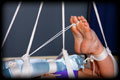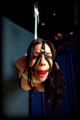 Courtney follows on from her previous image set, with this one picking up where the last one left off. She was laying on the floor recovering from being balanced on her knees when right away the next set of ropes were lashed onto her body. Before she has a chance to realize what is coming she is pulled up into the air in a suspended frog-tie, her legs wide apart, nipples clamped, 2" gag tightly strapped on and her head pulled back at a painful angle. There she swings in the air back and forth, complete at my mercy. |