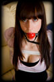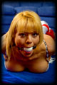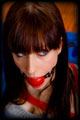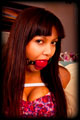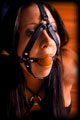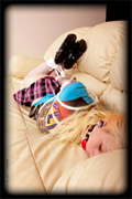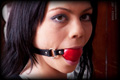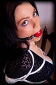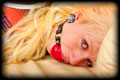 Courtney gave me a call one day and asked if she could drop in to discuss some ideas she was having for a shoot. She arrived wearing a very typical outfit for her, and plunked herself down onto my couch looking oh so sweet and innocent. We got to talking, and then one thing led to another, and before we knew it is she was hogtied tightly on the couch with a big ball gag in her mouth! It was late and so I went and had dinner, and just left her like that to squirm around wondering how she got into this mess. |