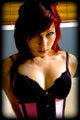 Cassy decided to be a brunette and I was none too pleased!!! To teach her a lesson some hard endurance bondage was needed. She was laced into the corset cinching her waist down tighter than ever before, her arms were crushed tight into a size too small Armbinder, I put an extra tight harness ball gag into her mouth buckling it up tighter than needed, and then I strapped her up tight so she couldn't move an inch. I finished by tie a rope to her head harness pulling it back very hard indeed. She stayed like this for several hours to teach her a lesson! |