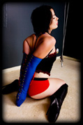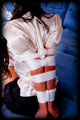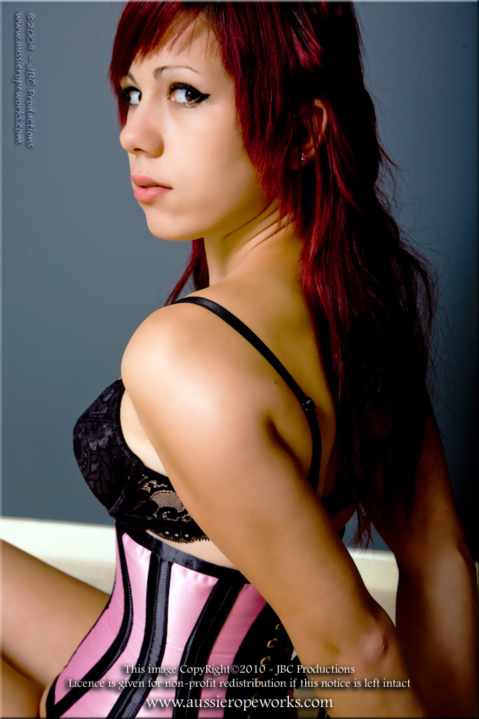 Melissa is back to have another go at being tied into an impossibly tight position. This time around we are going after one of those John Willie style impossibly tight positions. All too often the imagery of John Willie is considered impossible to do to a real girl, but I believe otherwise - you just need the right girl. Melissa shows that she is more than capable of enduring a corset that reduced her waist to an impossibly small size, and an Armbinder that grinds her arms together behind her back. |