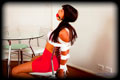 Tita the cute little teenage minx is back, and this time it's a strict hogtie and gag for her. She arrived in this amazingly tiny outfit that she had actually worn here - no doubt to tease men to distraction while out and about. I thought, perfect! So I immediately thought that this girl needs to be taught a lesson for her teasing behavior. Afterwards when she left she had rope marks all over her body. No problem for her, just another way to tease men again! Grrrrrr. |