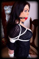 Cobie was over for a visit. Just dressed casually, and nothing was setup. One thing led to another and an impromptu bondage session resulted. So special clothing or lingerie, no special lighting. We opened the curtains, the light streamed in, and I started tying her up and seeing where it took us. What resulted was a very sexy bit of bondage, showing off the curves of her tight and sexy body. Elbows tied grindingly tight together, big ball gag, tight ropes, strict hogtie, and toes tied together - Things just got tighter and tighter. |