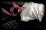 Melissa is placed into a complex rope suspension position. Ropes are bound around her body above and below her breasts, around her waists at her hips, and around each of her legs. Once up in the air her legs are folded and further ropes are attached to her ankles and her wrists are bound to her sides. To finish off, a harness ball gag keeps her head pulled back and forces her to stay looking forward. I pulled on her body and let her swing slowly back and forth - completely unable to escape the bondage that held her body, forced to be an object of lust as she hung in the air, completely humiliated by her predicament and utterly vulnerable and helpless for all to touch and play with. |