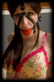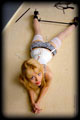 I had Sarah in for a shoot, but I was in a funny mood, a little annoyed, a little impatient, and just wanting to take it out on someone with bondage as my weapon. So I roped her into one hell of a painfully tight position, and when she dared to protest that is was too tight - that she couldn't take it any longer - I stuffed a way oversize gag into her mouth to shut her up. LOL, sorry Sarah. |